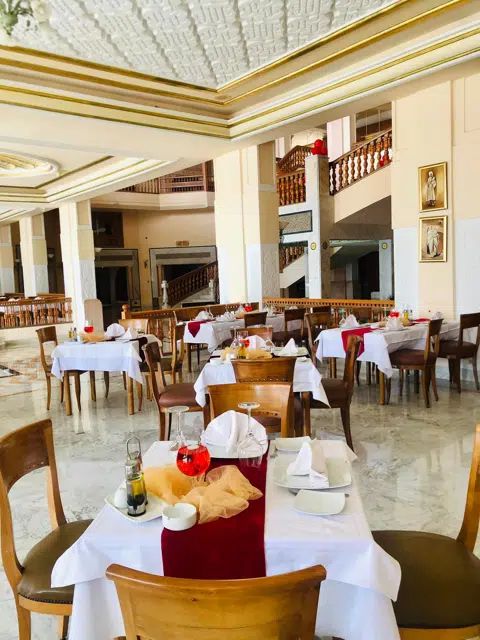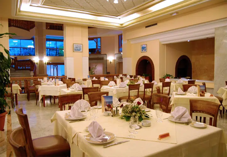 レストラン"モナスティール":メインレストラン、朝食のためのアメリカのビュッフェを提供しています洗練された、といくつかのテーマに応じてお食事のた